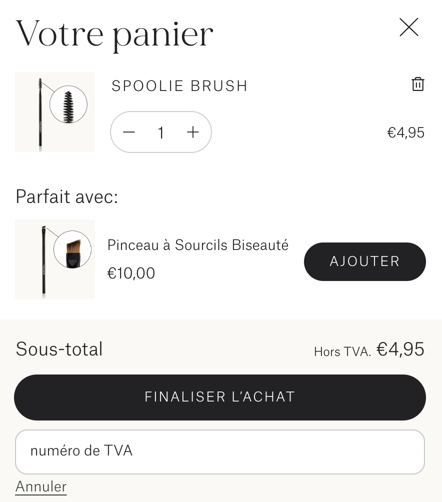 Vous voyez toujours un montant de TVA incorrect? Vous n’êtes probablement pas connecté, ou votre numéro de TVA n’a pas été saisi (correctement) dans le panier.
